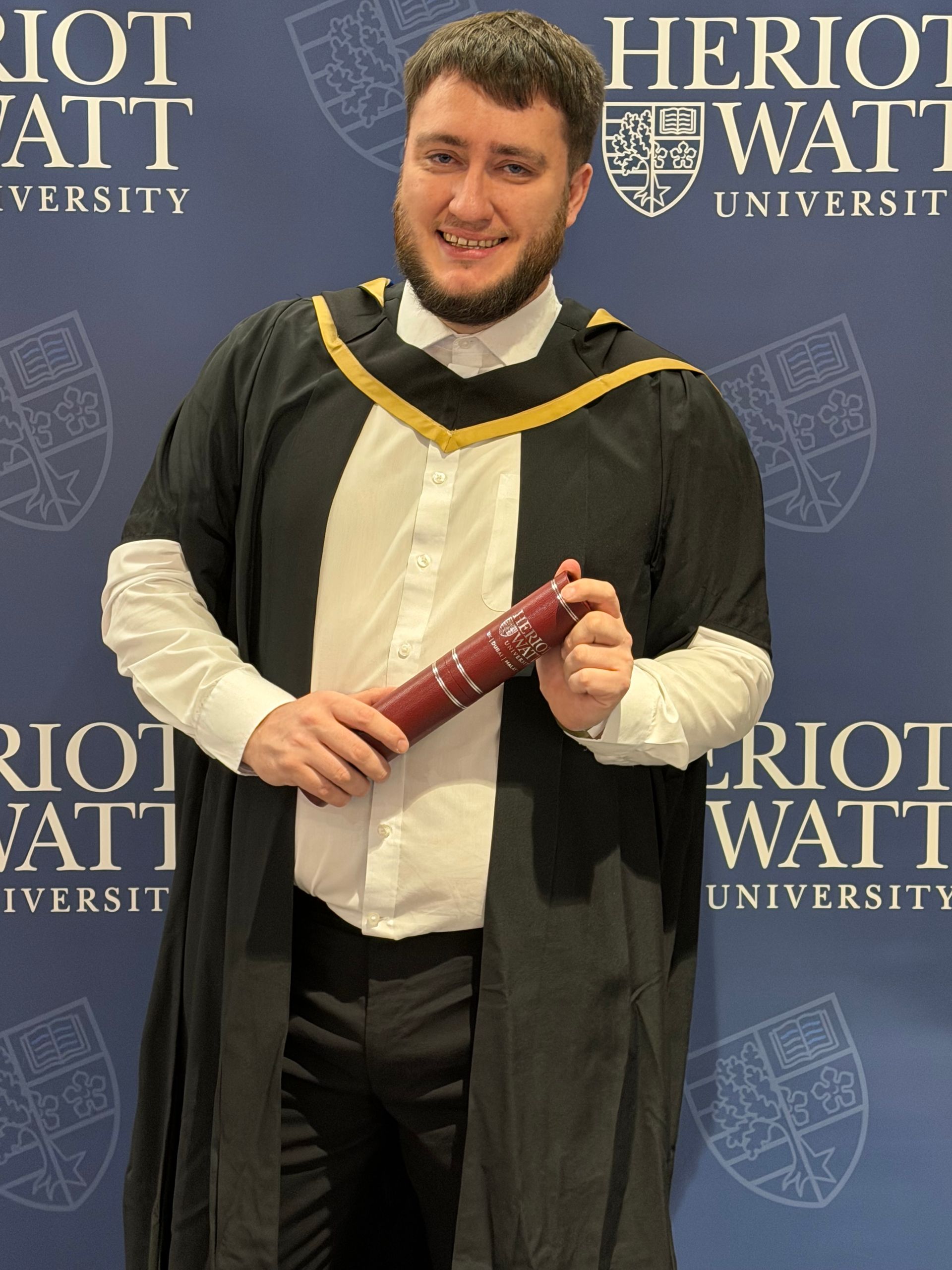 Pictured at ENU Summer Graduation 2024 after receiving my 1st Class Honours
